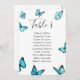 Blue watercolor butterflies Wedding Table plan. Elegant choice for summer weddings. Part of a wedding collection. Card with Meal Choice.
