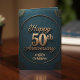Celebrate fifty years of love with this elegant 50th Wedding Anniversary Greeting Card. The deep blue background exudes sophistication, enriched by intricate embossed patterns. A golden circle centerpiece frames the celebratory message in graceful cursive script, complemented by personalized gold lettering below.