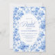Luxury Deep Blue Toile Roses Bridal Shower Invite