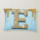 Luxury Diamond Letter E on Gold Glitter Background Accent Pillow