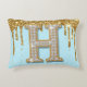 Luxury Diamond Letter H on Gold Glitter Background Accent Pillow