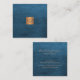 Luxury elegant blue leather copper gold monogram square business card
