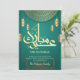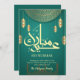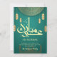 Celebrate the joy of Eid with this luxurious emerald green card featuring a detailed gold mandala and hanging lanterns. The intricate geometric borders and mosque silhouette add a premium feel to your holiday wishes.