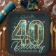 Celebrate a milestone fortieth birthday with these elegant teal and gold agate party plates. The design features a stunning, large "40" filled with a faux turquoise stained glass or geode texture, outlined in printed gold foil effects. Set against a dark, moody background with sparkling bokeh accents, this design exudes sophistication.