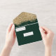 The elegant, glamourous, and modern wedding invitation and rsvp bundle is perfect for the contemporary and stylish engaged couple. It features a faux printed gold sparkly glitter confetti speckled colour block on top of a simple forest green background. The back displays the same glitter but a thicker panel above a special message from the bride and groom, which can be customized or deleted. This chic, luxury, and unique design will be a hit with all of your guests!