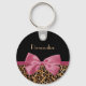 A luxury tawny gold and brown fur leopard print keychain with a girly mauve pink ribbon tied into a girly bow. Personalize this fashionable animal fur pattern by adding your name.