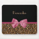 Luxury Gold Fur Leopard Print Mauve Bow With Name Mouse Pad