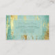 Here's a distinctive, elegant, and professional card that works well for many different businesses. The front has your custom text in two fields on a solid semi transparent rectangle that is framed with double thin gold lines. The rectangle is placed on a stunning background of gold faux paint layered over an aqua blue background that appears infused with light. The back of the card has the same background and framed background with more text fields. Beautiful!
