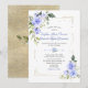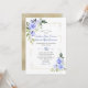 Romantic and elegant design featuring blue watercolour flowers corners, unique faux gold broken frame and confetti, floral divider; on the back floral bouquet on faux gold glitter background. Use Personalize tool to add your info, make changes. Matching items could be found in my Blue Floral Bloom Collection.
