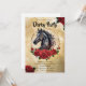 Host a glamorous and unforgettable Kentucky Derby event with this stunning invitation featuring a majestic black horse silhouette framed by a golden circle and surrounded by lush red roses. The sparkling gold background adds a touch of magic and sophistication, perfect for an evening gala, a high-end watch party, or a fancy derby dinner.