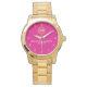 Indulge in timeless elegance with this Luxury Gold Personalized Watch, featuring a vibrant pink dial, sleek Roman numerals, and a polished gold-tone stainless steel band. Perfectly customizable with names, initials, or dates, this exquisite timepiece makes an unforgettable wedding gift, anniversary keepsake, or milestone celebration present for loved ones. Trending on Zazzle under “personalized luxury watches,” “engraved wedding gifts,” and “custom couple accessories,” this watch combines modern sophistication with a meaningful personal touch. Its durable design and eye-catching color palette ensure it remains a cherished heirloom for years to come.