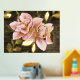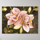 Transform your living space with our exquisite 18x24 inch real gold foil print, showcasing the ethereal beauty of a lily blossom, , against a customizable brown background. Crafted with meticulous attention to detail, this stunning artwork features delicate pink blush blossoms accented with shimmering real gold foil, adding a touch of luxury and modern elegance to your home. Personalize this botanical masterpiece with your own touch of love, including other designs. With the option to choose from various sizes and add a white surrounding border or none, you can customize it to perfectly suit your space and style preferences. Designed by Hobinishop, this artwork seamlessly blends minimalist sophistication with opulent charm, creating a captivating focal point for any room. Elevate your decor by framing this exquisite piece, enhancing its already captivating allure and bringing a sense of refined beauty to your surroundings. Redefine elegance with our real gold foil print and infuse your home with the timeless allure of nature's finest blossoms.