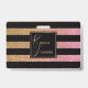 Elegant and precious modern trendy glitter illustration with symmetrical black stripes. Glitter background contains a gold to light pink soft gradient; glamorous noble design for a luxurious look.
