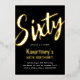 Add style and luxury to your birthday celebrations with these elegant real gold foil Birthday Invitations. Design features the calligraphy script 'Sixty' in gold on a classic black background with a modern custom template that can easily be personalized with your own event details. Name and age is also in gold foil.