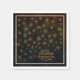 Featuring a dark, rich background that subtly shifts from deep black to hues of midnight blue and green, each napkin is beautifully adorned with a shower of shimmering gold snowflakes and twinkling stars. The festive "MERRY CHRISTMAS" message, along with "THE STEVENSON FAMILY" (customizable with your own family name), is gracefully placed in the corner, adding a personalized touch.