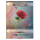 This design features the graceful outline of a minimalist vase cradling a vibrant rose, symbolizing the profound beauty found in simplicity. The delicate interplay of light colours in the background enhances the quiet drama of the solitary flower, while subtle gold accents add a touch of sophistication, creating a serene yet striking visual statement.
