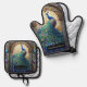 Luxury Kitchen: Stained Glass Peacock Oven Mitt & Pot Holder Set