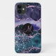 Girly Luxury Purple & Teal Marble Agate Glitter Letter Monogram iPhone 11 Case.