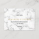 A luxurious white marble background with subtle grey veining and elegant gold accents. The front displays your name in bold gold uppercase letters, with your profession or business title above in clean black text. Contact details are set in a modern sans-serif font for clarity and professionalism. The reverse side highlights your company name and location inside a gold rectangular frame, creating a cohesive and refined look. Ideal for consultants, entrepreneurs, creatives, or anyone seeking a timeless, high-end business identity.