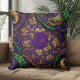 Luxury Mardi Gras Carnival Pillow with ornate Masquerade masks, beads and Fleur-de-Lis Pattern for celebration. The swirling ornamental patterns add a sense of motion and festivity, reminiscent of dancing crowds, lively music, and floating confetti. In the center is text that can be personalized with your Name or Monogram. You can also remove it if you want only the pattern.