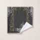 Luxury meets romance. An artfully designed black, silver gold frame adorned with delicate, filigree decorations. These loving details give the design an opulent touch and envelop the viewer with a feeling of festive anticipation. Within this magical frame, a woman reveals herself in a stunning wedding dress. The design exudes an aura of exclusivity and warmth