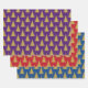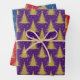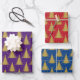 This unique, modern, hand drawn, cute design features Christmas trees in faux yellow gold on purple, red and navy blue backgrounds. This set of wrapping gift paper is an excellent addition to your winter holidays celebration