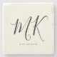 Luxury Minimal Monogram Black Ivory Chic Stylish Stone Coaster