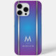 An elegant luxurious style abstract iPhone case featuring violet and blue geometric design. Personalize with your monogram and name.