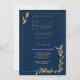 Luxury navy blue gold foliage Bridal Shower Invitation