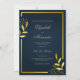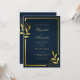 Luxury navy blue and gold foliage floral wedding invitations. This simple geometric gold foliage wedding invitation is perfect for any sophisticated girl. This design is ideal for a trendy and elegant party event. Customize this design with your message and personalized information. All designs are printed.