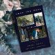 Luxury Navy Blue Minimalist Trendy Wedding Collage 4 Photos Metallic Foil Save the Date Card with Envelope.