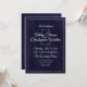 This elegant wedding invitation features a deep navy blue textured background paired with refined white typography for a timeless and sophisticated presentation. The front design showcases the couple’s names in graceful script with classic serif text for the ceremony details, accented by delicate ornamental flourishes and a double-line border. The coordinating back includes a clean monogram layout with a QR code, offering a modern touch while maintaining a formal aesthetic. Perfect for traditional, black-tie, and formal weddings, this invitation blends classic elegance with contemporary convenience and coordinates seamlessly with a complete wedding stationery suite.