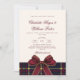 Luxury plaid Burgundy Bow Winter Weddding Invitation