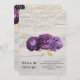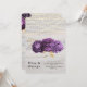 Design features a printed coloured floral element in shades of purple, lavender, ultra violet and plum with peony blooms and wood barn bark line and string of lights. Calligraphy script or type writing. Mix and match collection piece. Great for your wedding celebrations!