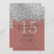 Luxury Rose Silver Glitter Confetti Quinceañera Invitation