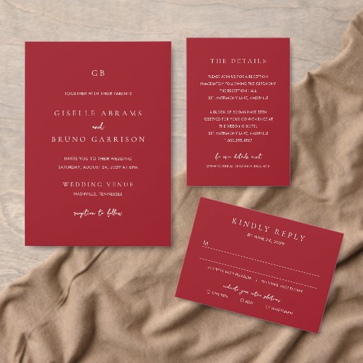 Elegant Ruby Red Modern Wedding Invitation SuiteDesigned by Cynthia