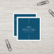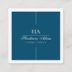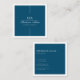 Square ocean blue and white business card with a professional classic touch of a luxurious monogram initials script signatured name and career in front, business name, profession and full details in back, perfect for real estate, realtors, accountancy, consultancy and any profession.