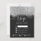Luxury Silver Black Glitter Confetti Wedding RSVP Card