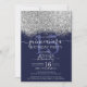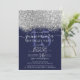 Luxury Silver Navy Glitter Confetti Quinceañera Invitation