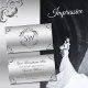 The design features glamourous, ornate silver decorative elements in the centre and corners, on a bright shimmering silver background.