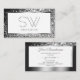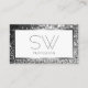 Luxury Silver Sparkling Glitter on White Monogram Business Card