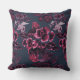 Luxury Stylish Watercolor Navy Blue Burgundy Floral Painting Pattern Throw Pillow.
