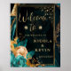 Luxury Teal and Gold Floral Agate Wedding Welcome Poster