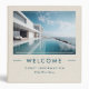 Custom photo, Luxury vacation homes welcome guest Information, simple beige linen texture background with blue typography.