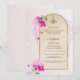 The hibiscus-pink sheen backdrop adds a warm, luminous glow to the invitation, continuing seamlessly onto the reverse side for a cohesive, luxurious feel. The subtle sheen offers a timeless and artistic look, ensuring your guests will appreciate the invitation as a cherished keepsake.