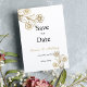 Luxury simple bold black, white, and gold typography floral Wedding Save the Date invitation. This elegant flower invitation is perfect for any classy and sophisticated glam girl. This design is ideal for a trendy and stylish party event. Customize this design with your message and personalized information. All designs are printed.