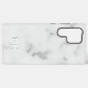 Image of a luxury white marble texture print with customizable embossed look monogram. Simple and minimalistic design.