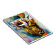 A vibrant tiger-kitten illustration with soft fur details and a colorful background gives this design a warm and creative character. The acrylic-inspired style adds depth and personality. On notebooks and stationery, the artwork adds a touch of creativity and makes everyday writing more enjoyable. All Rights Reserved. ©Anja Holz Design