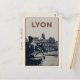 For all Lyon lovers or for those who like to share their travels with their friends. Retro postcard with Lyon Bartholdi Fountain view original illustration.