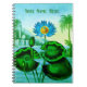 Carnet personnalisé dans une illustration stylisée d'un lotus égyptien bleu plante / nénuphar contre un paysage exotique de l'Extrême-Orient